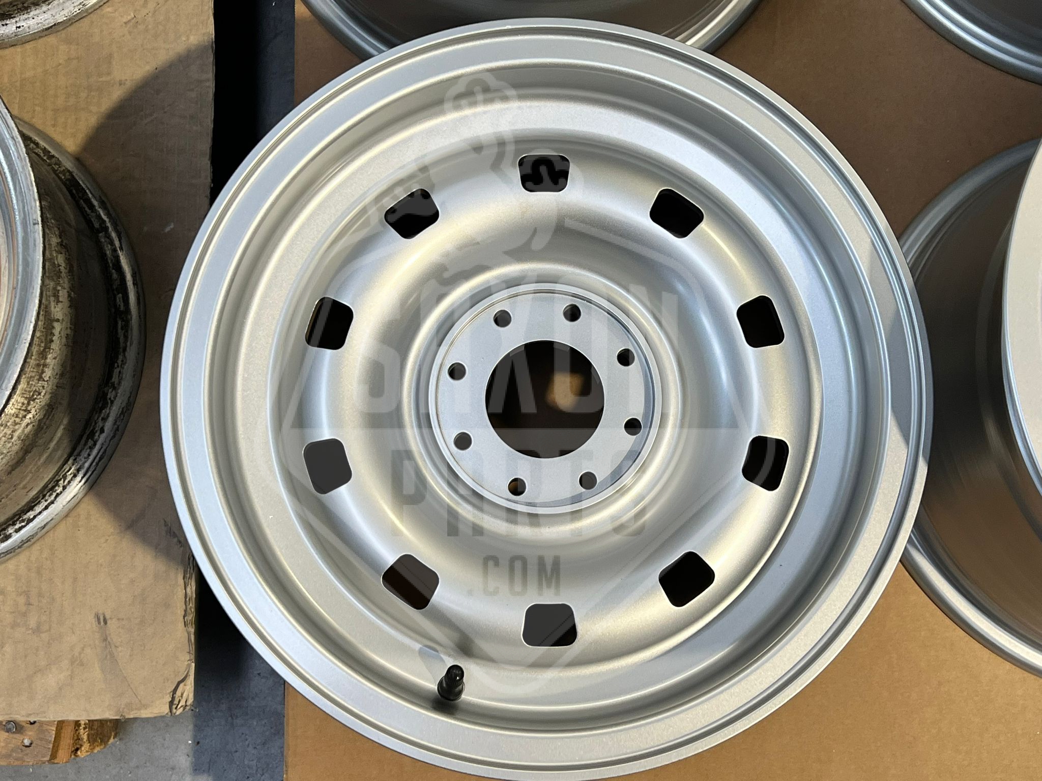 These 7×14″ wheels were originally manufactured by Campanolo for Ferrari models with knock-off hubs. The alloy rims were finished in silver and had splined Rudge 32 hubs bolted in. For Ferrari 365 GTC, but were also fitted on the 275 GTB/4 and 330 GT and 330 GTC. Part numbers used e.g. 700337 and 700212.